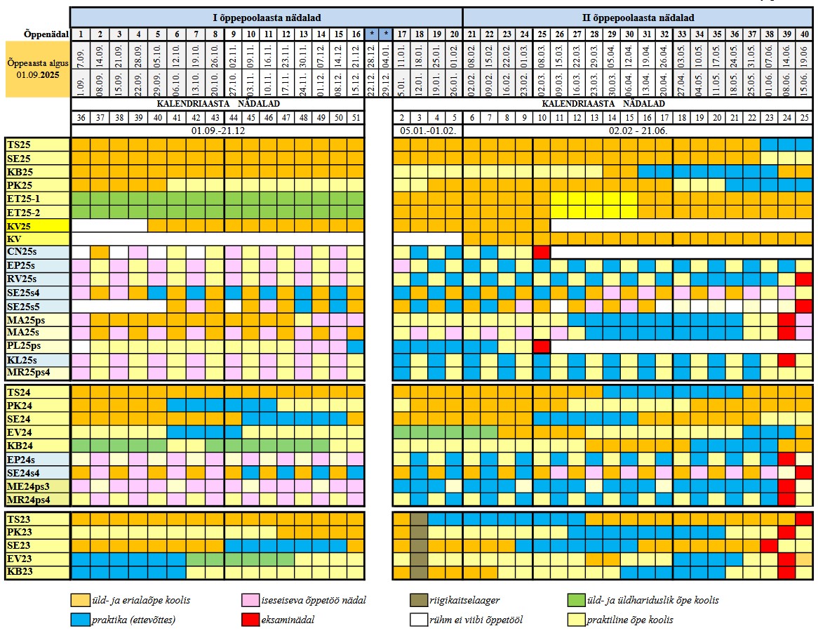 Õppetöö ajaline jaotusplaan 2025.–2026. õa