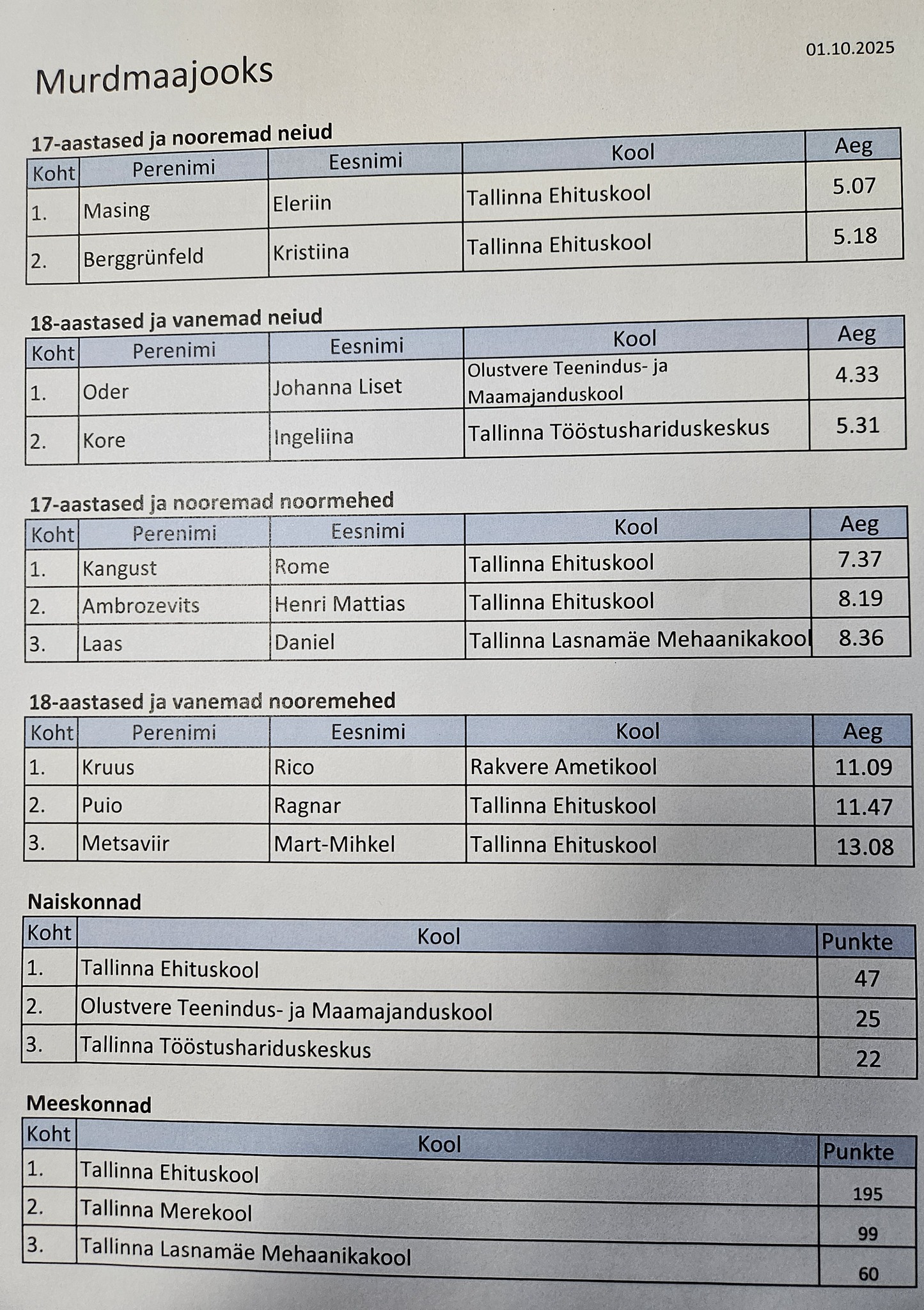 01.oktoobril selgusid Järve metsas Eesti kutsekoolide parimad jooksjad!